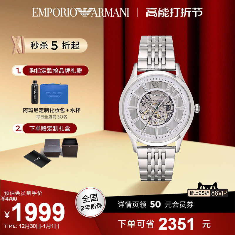 【新年礼物】Armani阿玛尼手表男运动潮流镂空机械表腕表男AR1945