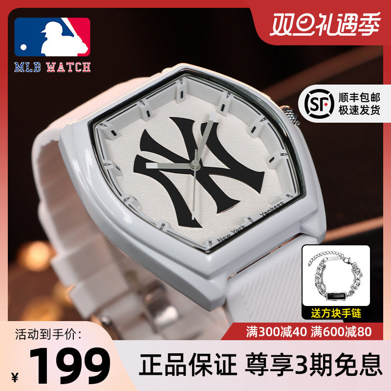MLB美职棒酒桶型手表男青年运动潮流学生女情侣款夜光防水石英表
