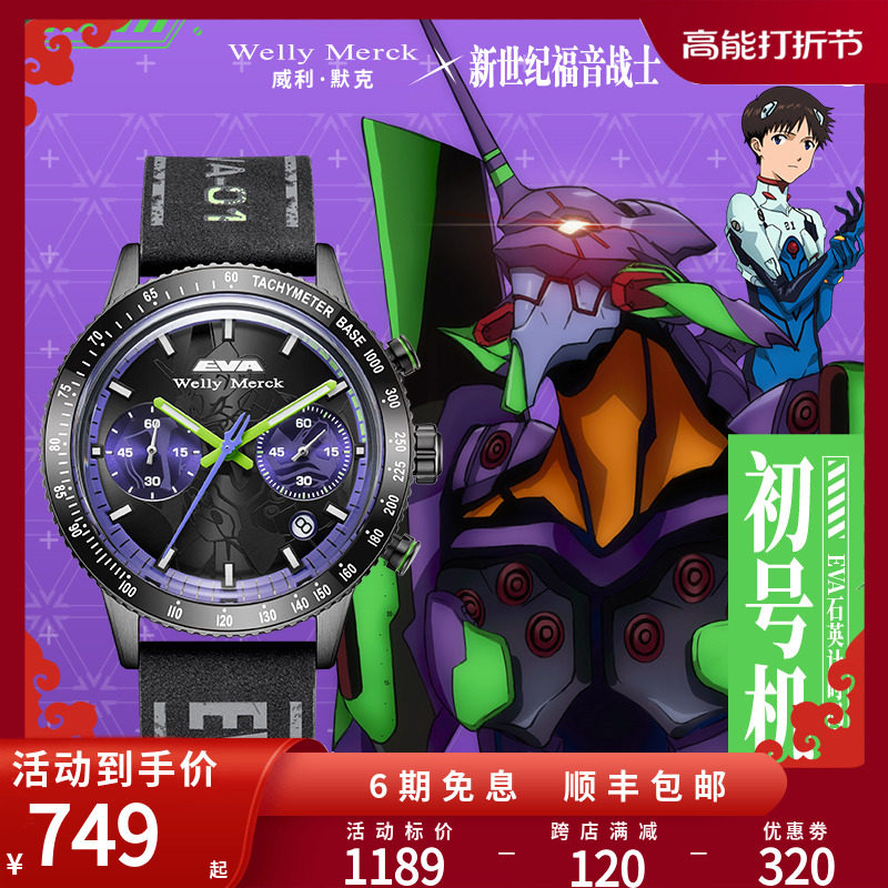 eva联名威利默克石英手表男士2023年新款学生男表男款变色龙腕表