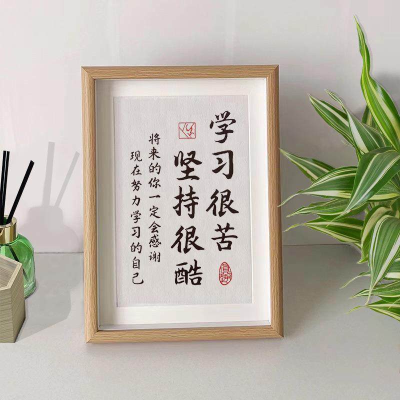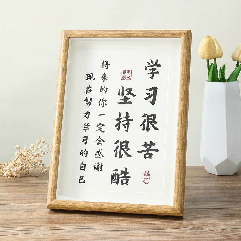 学习很苦坚持很酷相框摆件学生摆台鼓励孩子书法字画书房画框