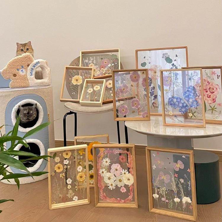 木质亚克力相框创意植物标本框欧式风双面玻璃画框摆件透明干花框