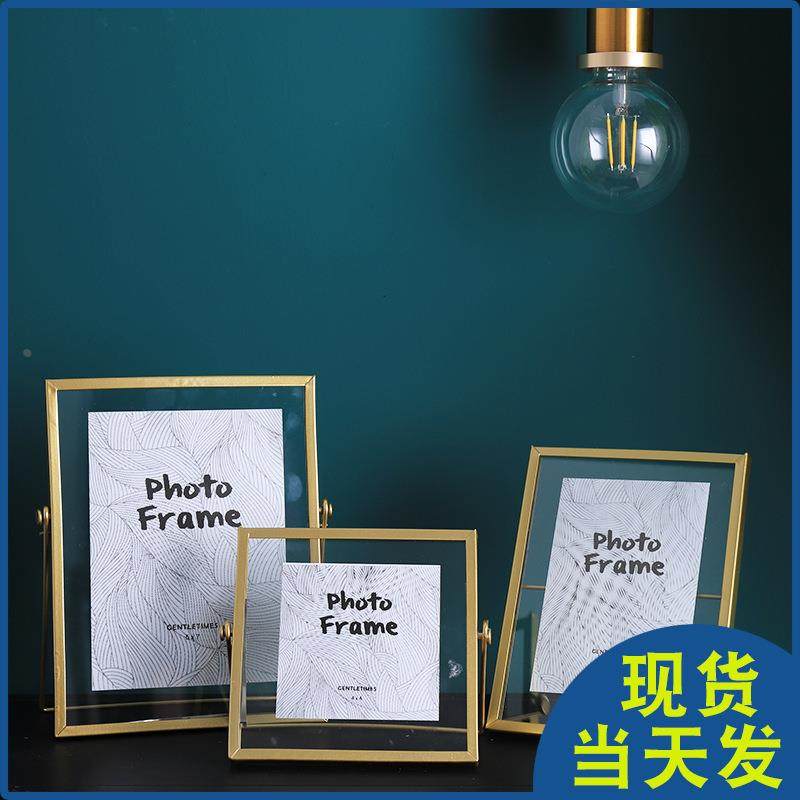 干花相框铁艺金属相框摆台玻璃金色画框 6寸植物标本创意
