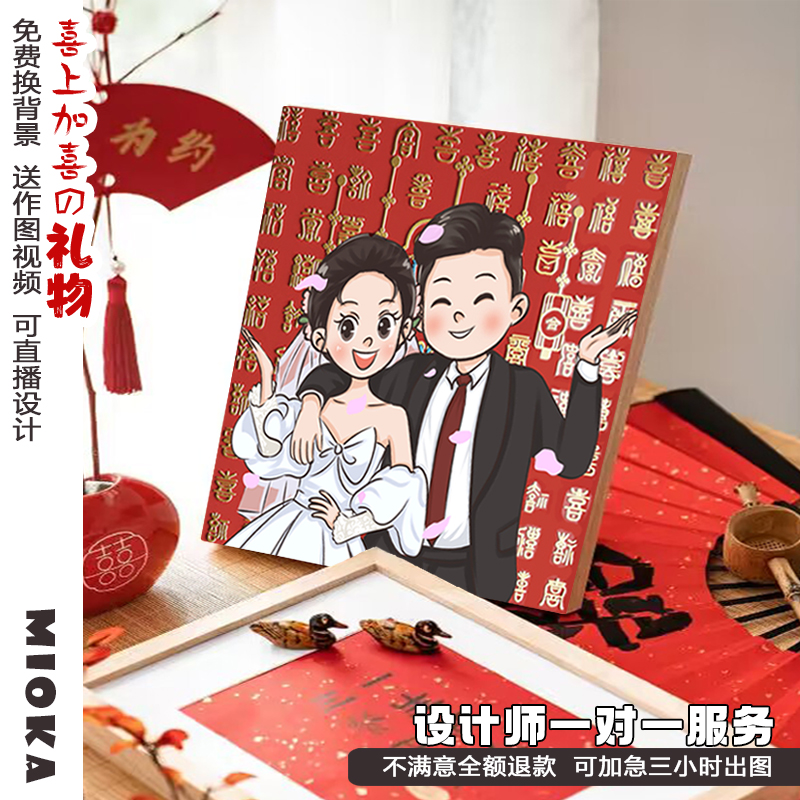 结婚礼物送新人百喜图新婚喜庆相框摆台DIY手绘婚纱照卡通画框
