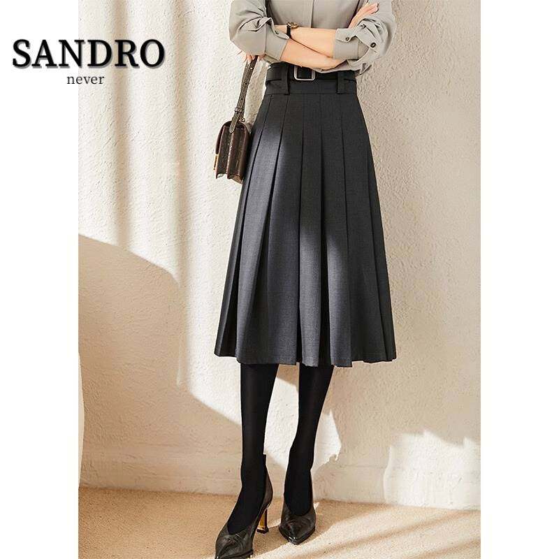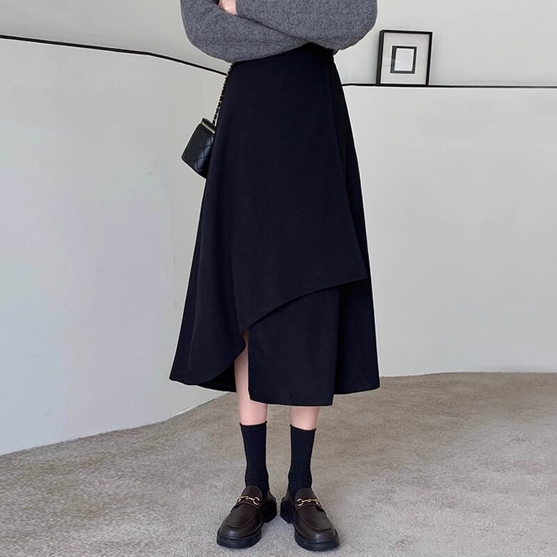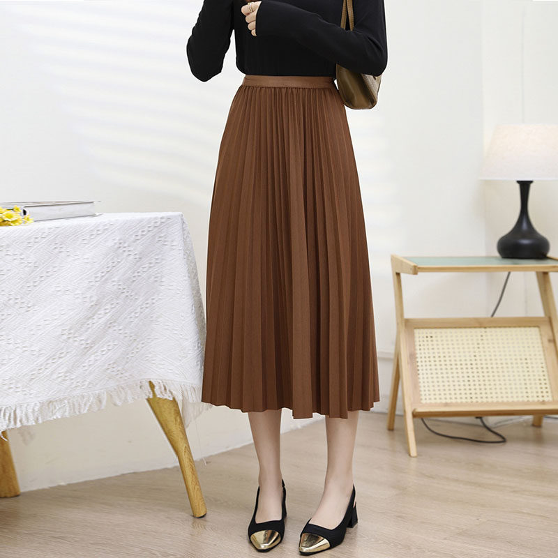 0838 软糯乱褶百褶a字半身裙秋冬女中长款2023新款高腰显瘦a字裙