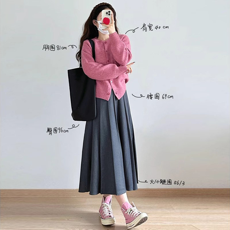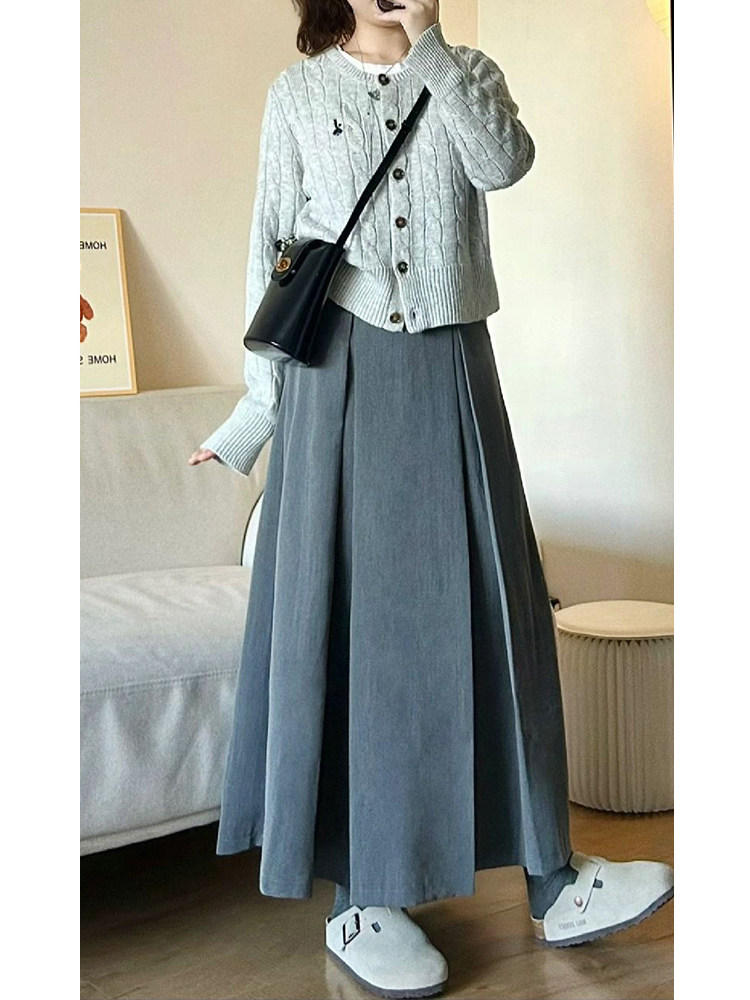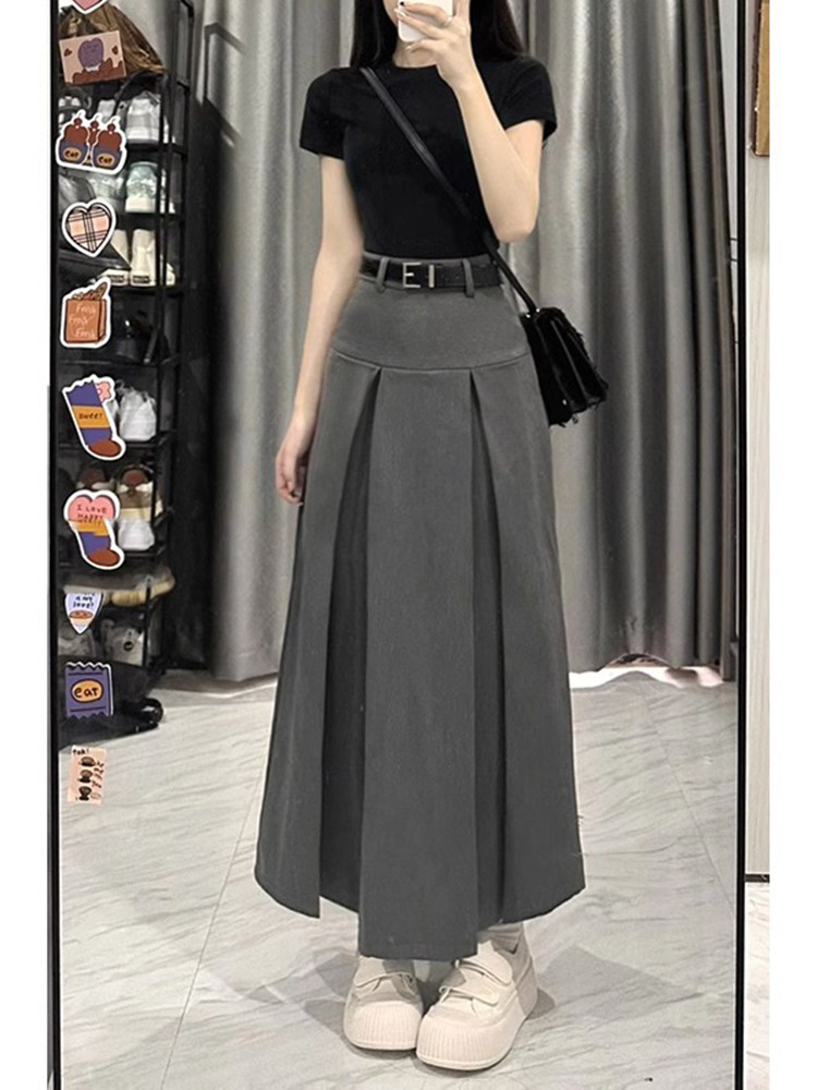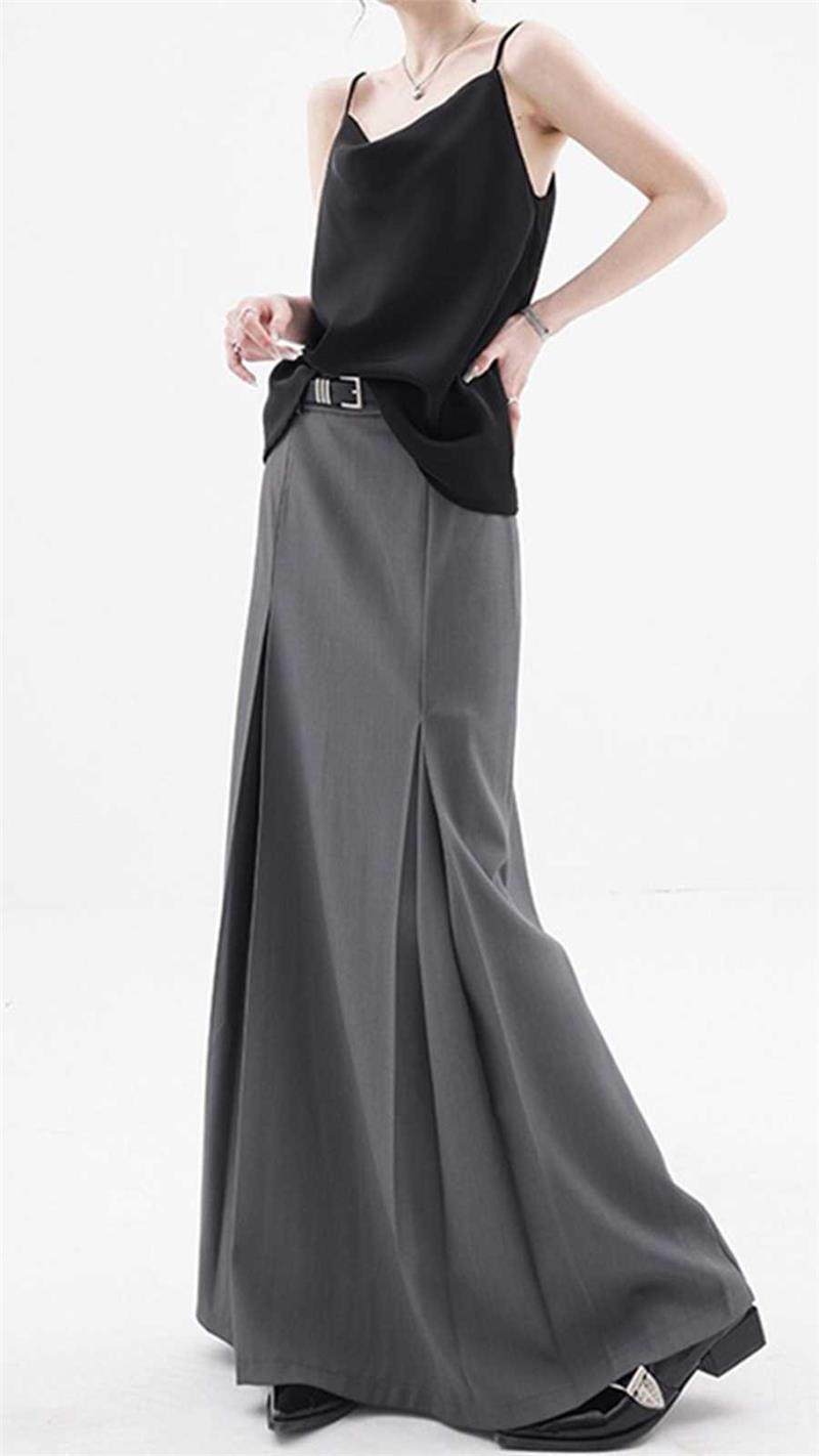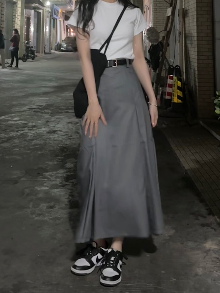 灰色百褶西装半身裙春季大码梨形身材穿搭遮肚子显瘦中长款a字裙