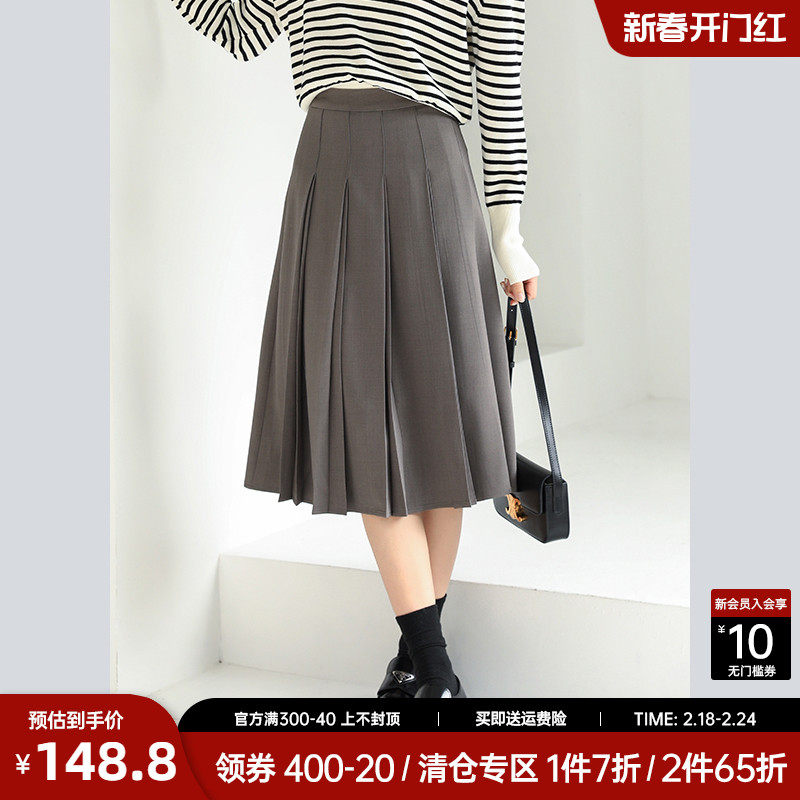 秋冬闭眼入【磨毛感呢料百褶裙】垂顺利落中长款半身裙女高腰通勤