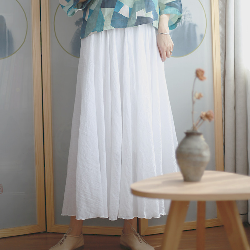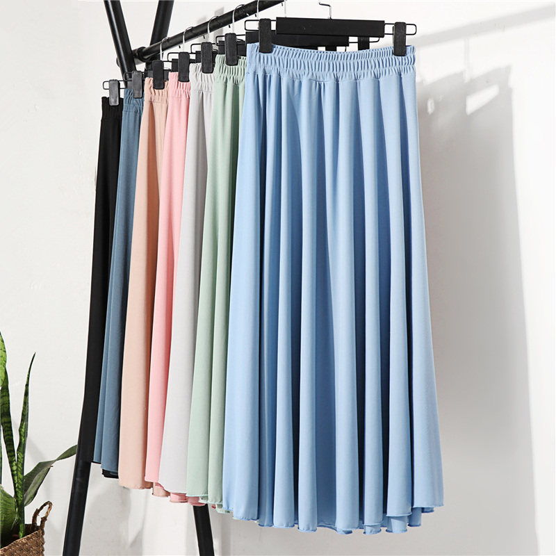 珠光气质薄纱a字半身裙夏女中长款薄款垂坠感飘逸百褶裙2023新款