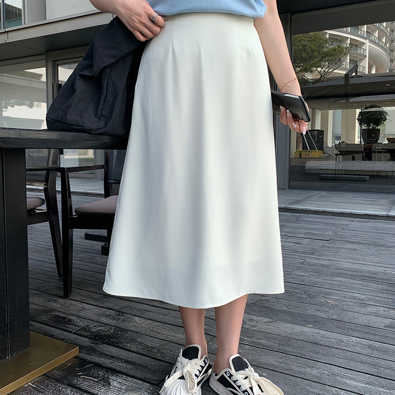 白色半身裙秋冬女中长款 2023春款新款垂感a字百褶裙小个子短款