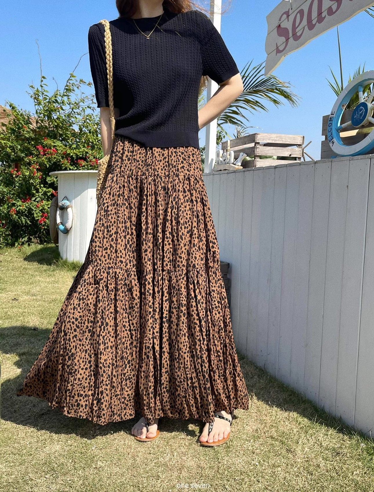 女士纯元CM黑白色抗皱免烫质感印花垂感百褶遮肉显瘦半身裙