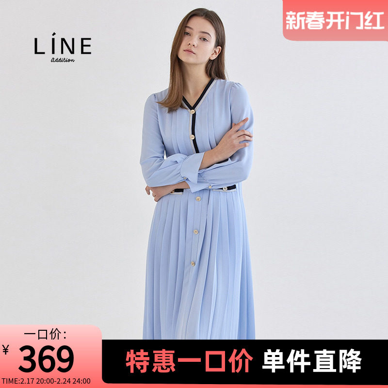 LINE女装韩国商场同款秋春新品舒适显瘦百褶连衣裙NWOPKJ0900