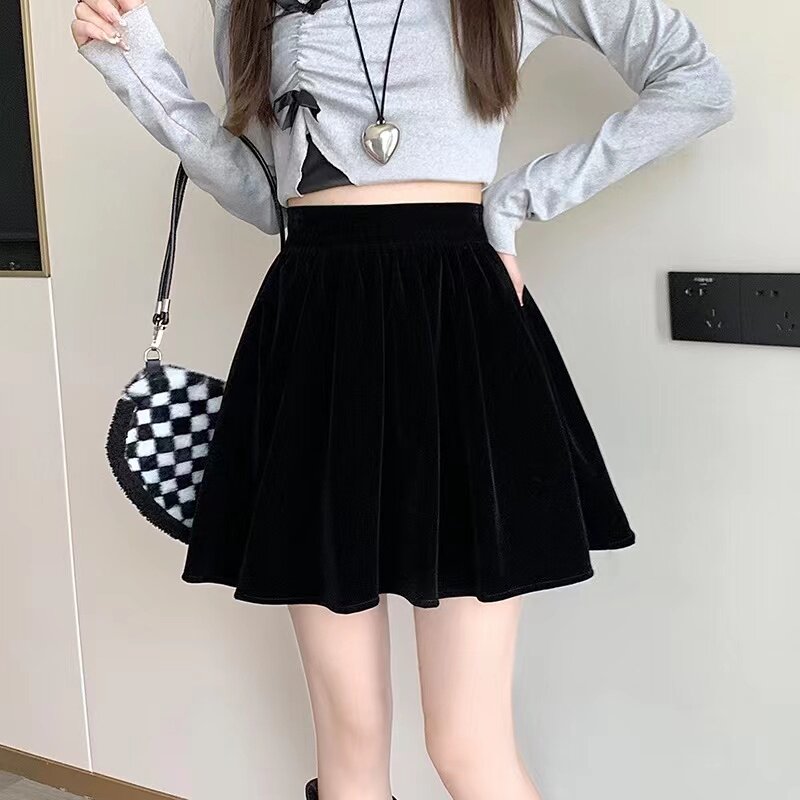 丝绒百褶裙2023秋冬新款高腰防走光蓬蓬半身裙大码遮肚a字短裙裤