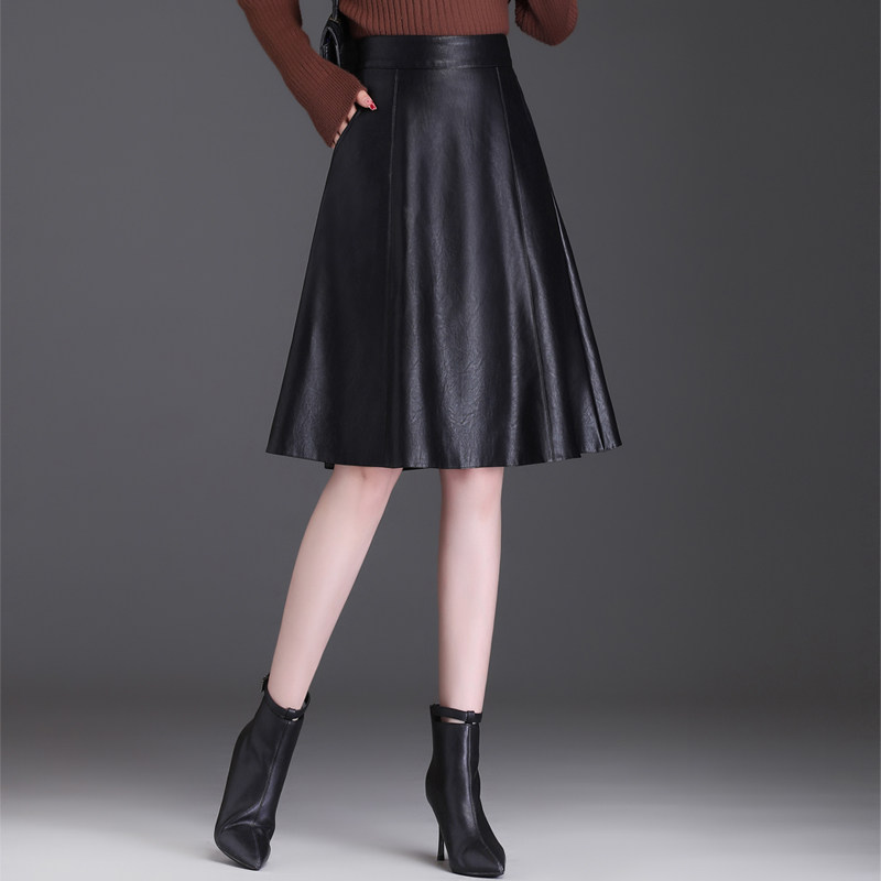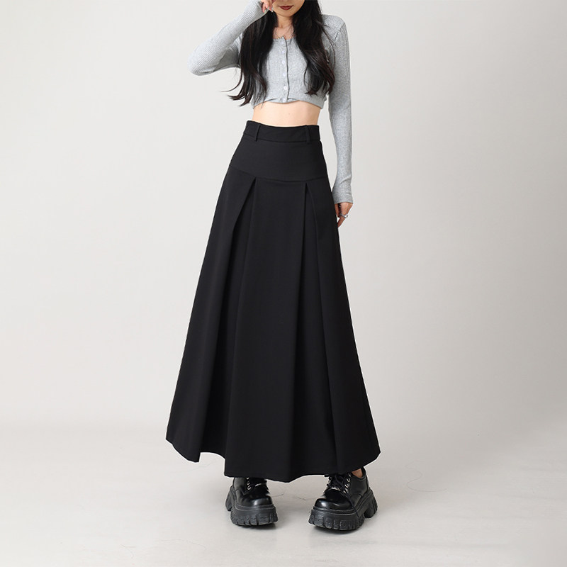 百褶半身裙女秋冬中长显瘦不显跨a字裙黑色高腰伞裙赫本风蓬蓬裙