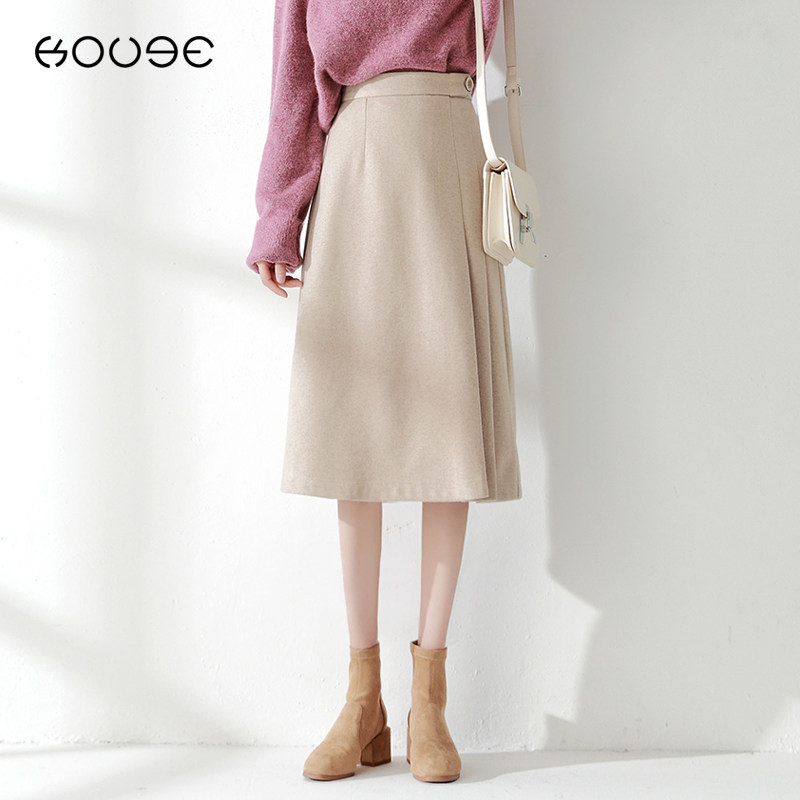 大码女装毛呢百褶裙半身裙冬季新款显瘦a字裙百搭高腰呢子中长裙