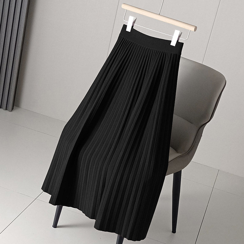 冬季小个子针织半身裙大码女装2022年新款高腰a字百褶裙短裙秋冬