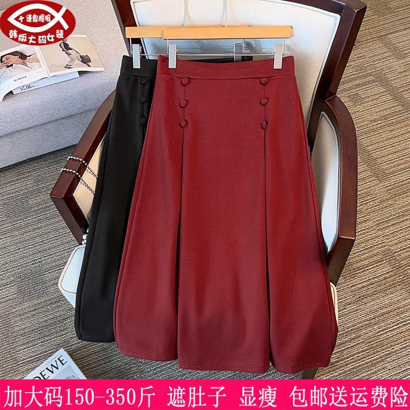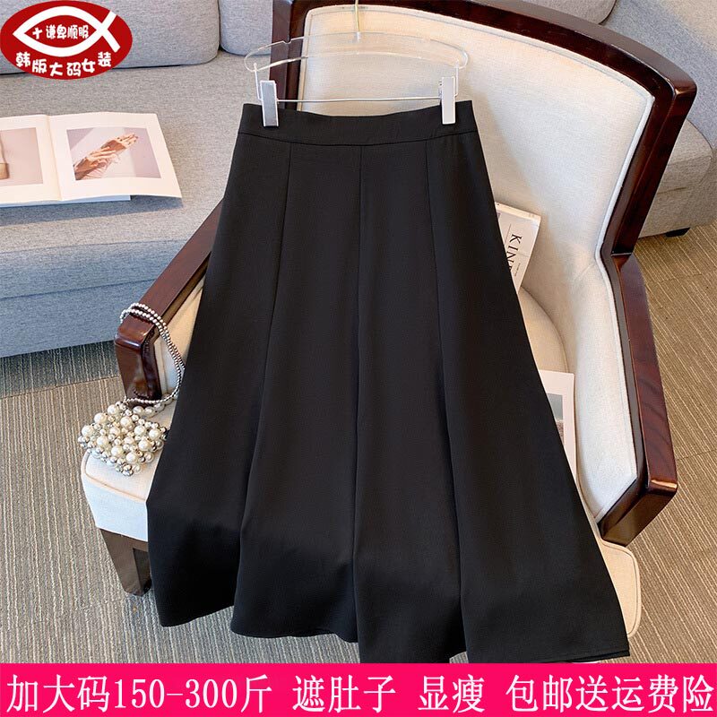 大码黑色半身裙女胖妹妹秋梨型身材显瘦百褶裙设计感百搭a字裙潮