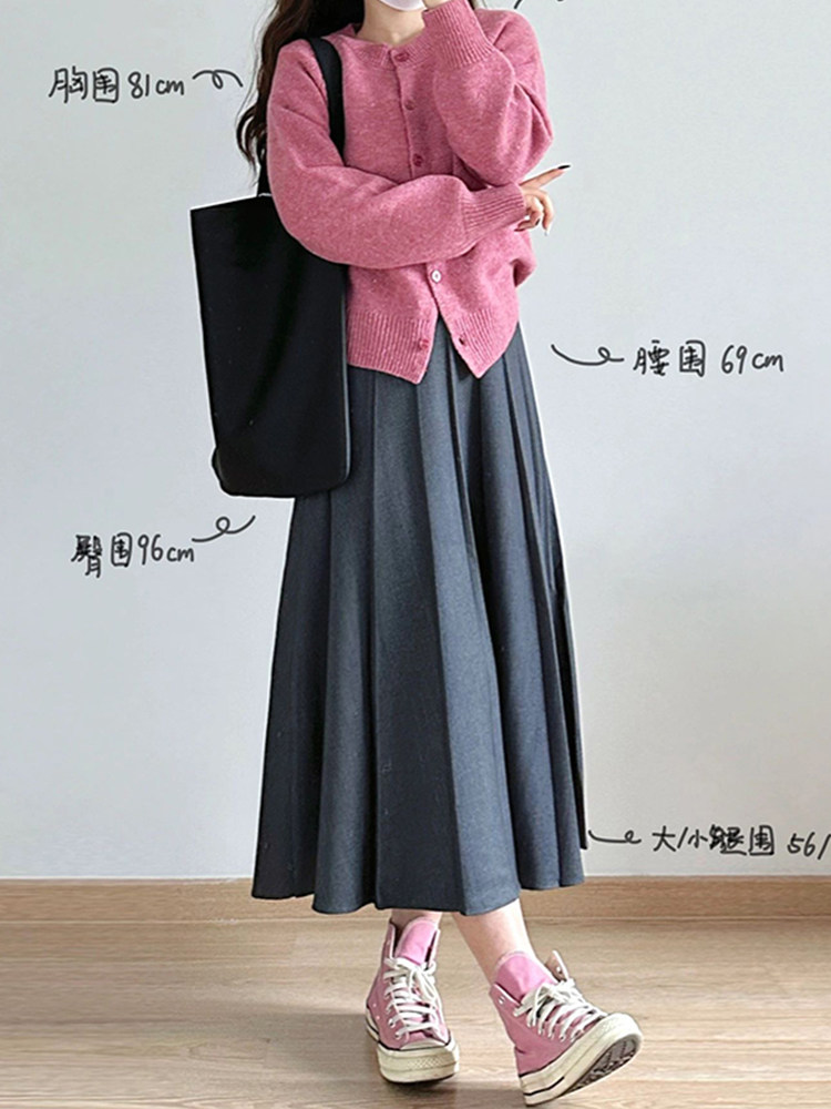 【送腰带】羊毛高腰A字百褶裙女秋冬赫本风复古显瘦中长款半身裙