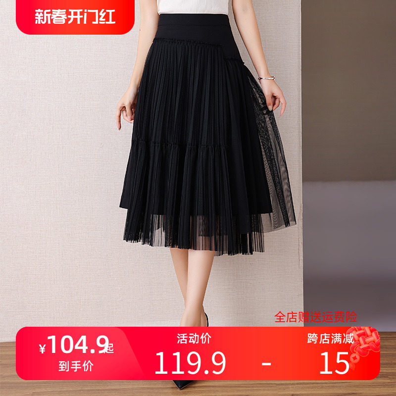 2210 多层蛋糕裙半身裙女秋冬中长款2023新款网纱a字纱裙百褶长裙