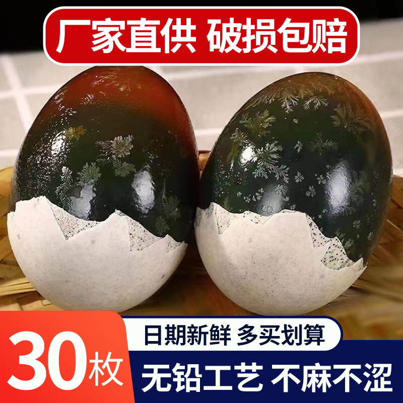 北海海鸭蛋特大皮蛋松花蛋30枚变蛋无松花皮蛋小盐皮蛋铅特产批发