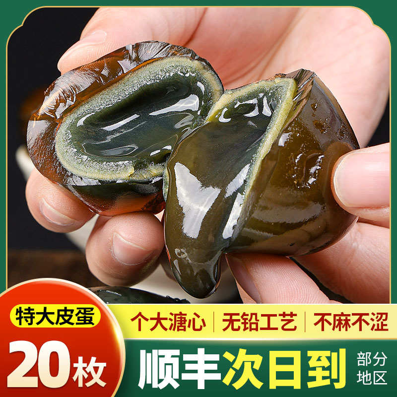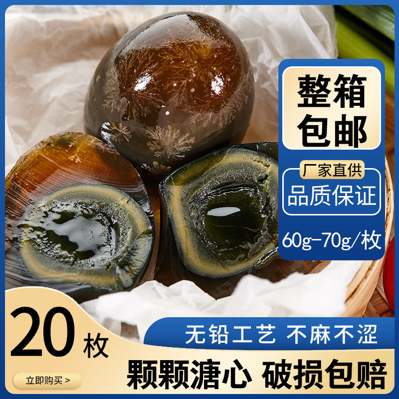 大个松花蛋皮蛋20枚60-70g溏心松花皮蛋无铅工艺鸭蛋变蛋整箱批发
