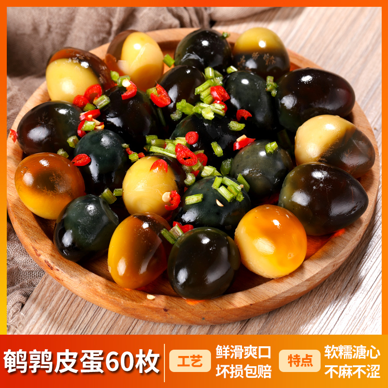 鹌鹑皮蛋松花蛋鹌鹑小皮蛋凉拌鹌鹑蛋软糯溏心鸟变蛋60枚整箱包邮