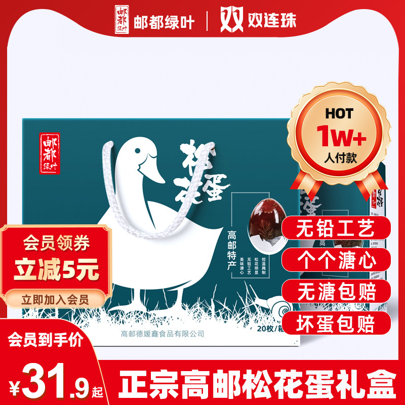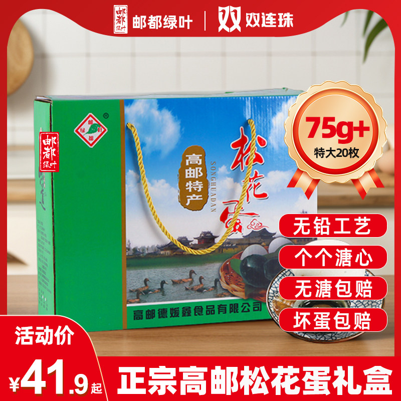云邮高邮松花蛋65克20只皮蛋溏心变蛋传统铅无工艺地方特产礼盒装
