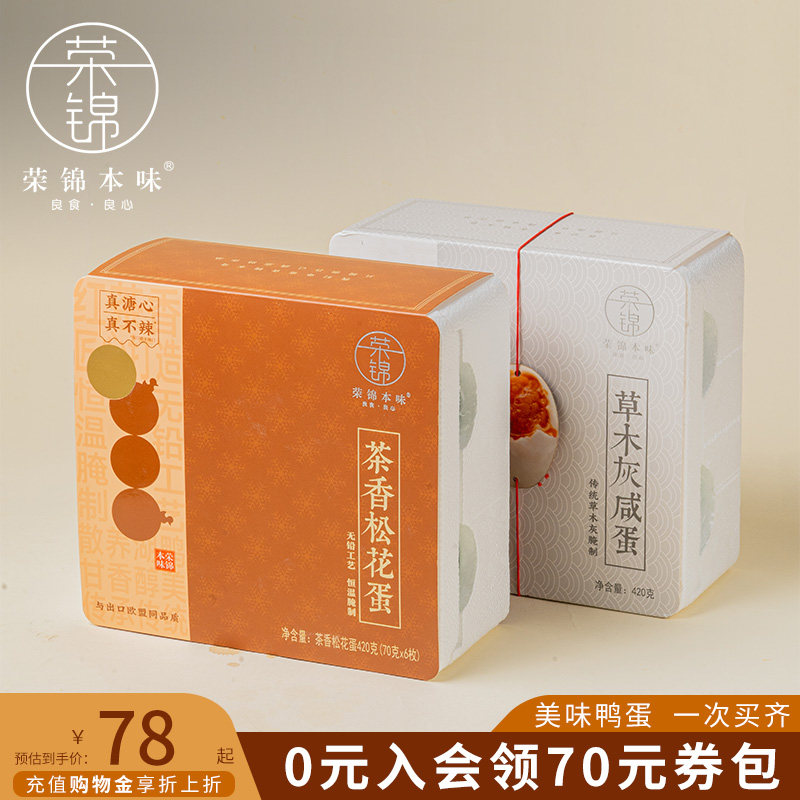 荣锦本味大咸鸭蛋皮蛋松花蛋变蛋茶香无铅工艺70g*6*2盒礼盒装