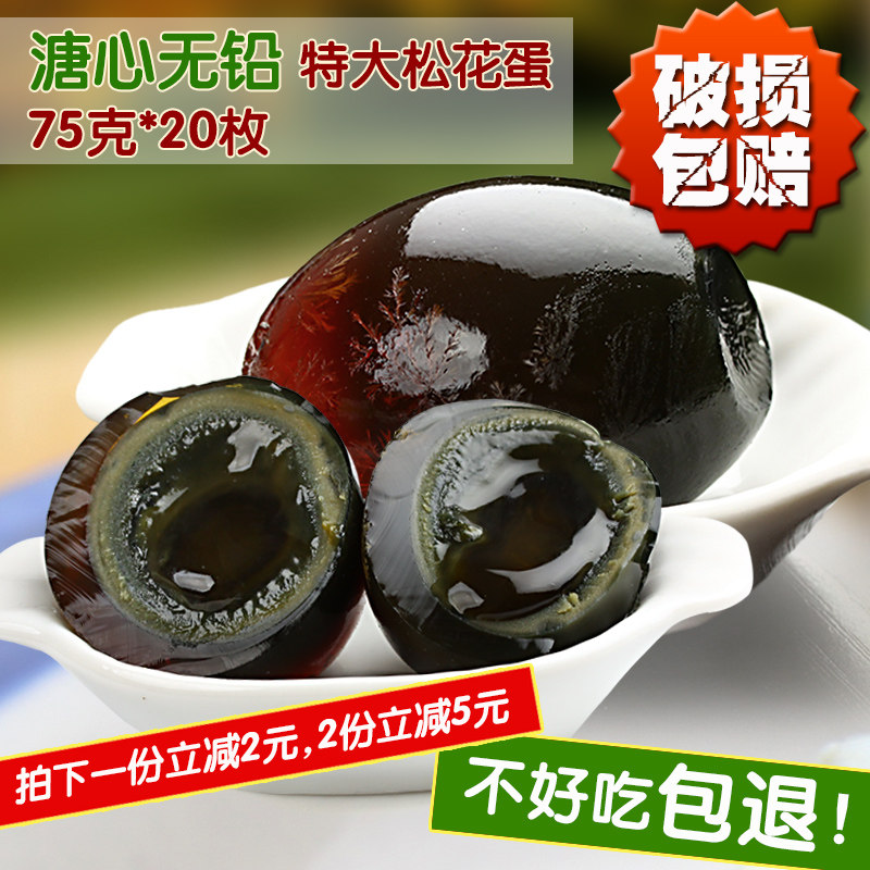 75克特大松花皮蛋仙桃沙湖农家无铅工艺溏心皮蛋20枚包邮湖北特产