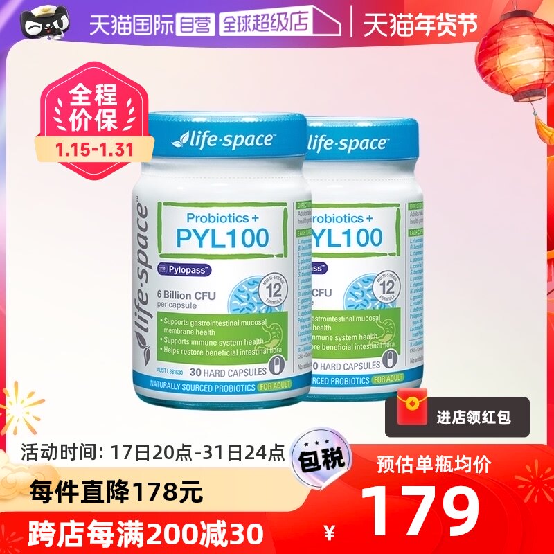 【自营】澳洲进口lifespace PYL100养胃益生菌胶囊30粒*2瓶