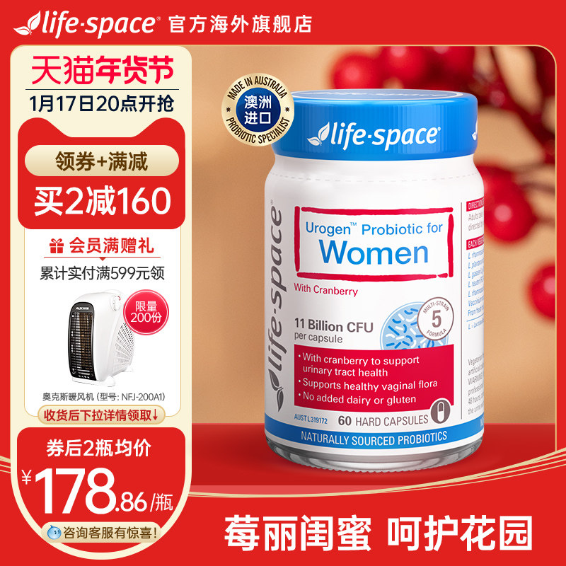澳洲进口lifespace女性蔓越莓益生菌+女性花园护理益生菌食品胶囊