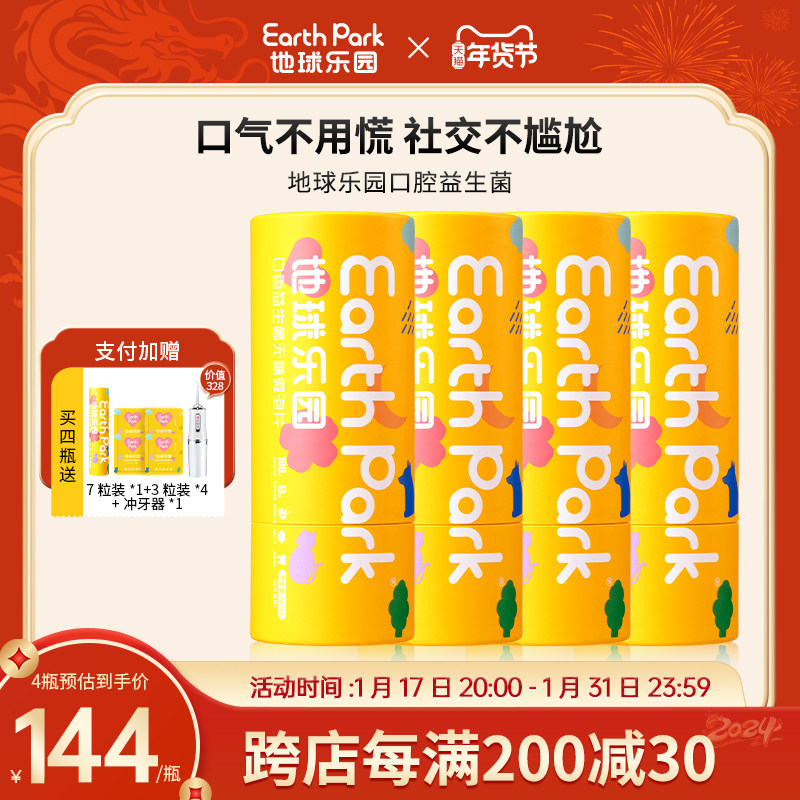 EarthPark地球乐园口腔益生菌含片4瓶清新口气留香益生元肠胃肠道