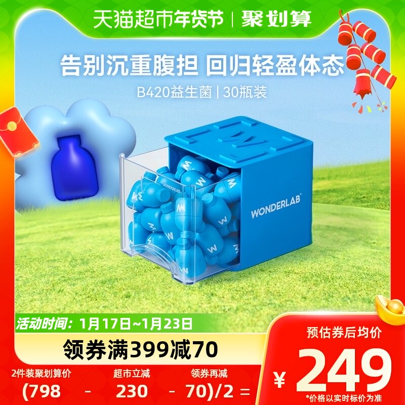 万益蓝WonderLab小蓝瓶即食益生菌400亿益生元肠胃乳酸菌2g*30瓶
