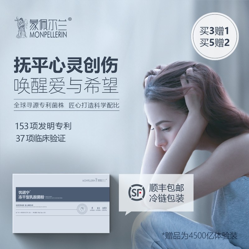 蒙佩尔兰忧诺宁益生菌缓解情绪焦虑高质量睡眠抑郁神经修护冻干粉