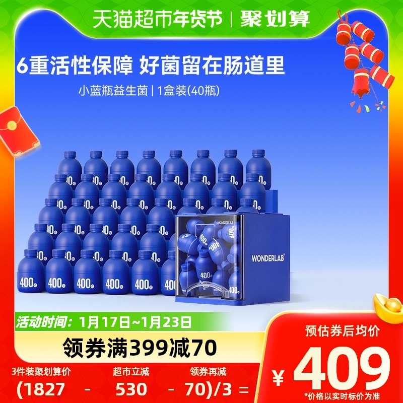 万益蓝WonderLab小蓝瓶即食益生菌400亿益生元肠胃乳酸菌2g*40瓶