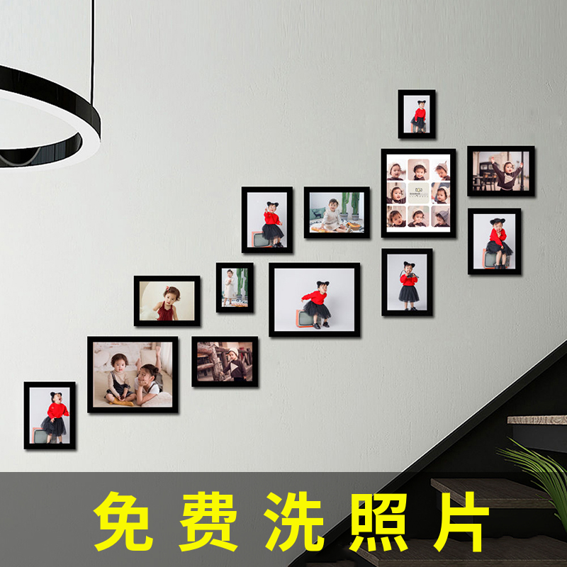 网红楼梯照片墙相框组合轻奢挂墙装饰墙楼道背景墙墙上相册墙创意