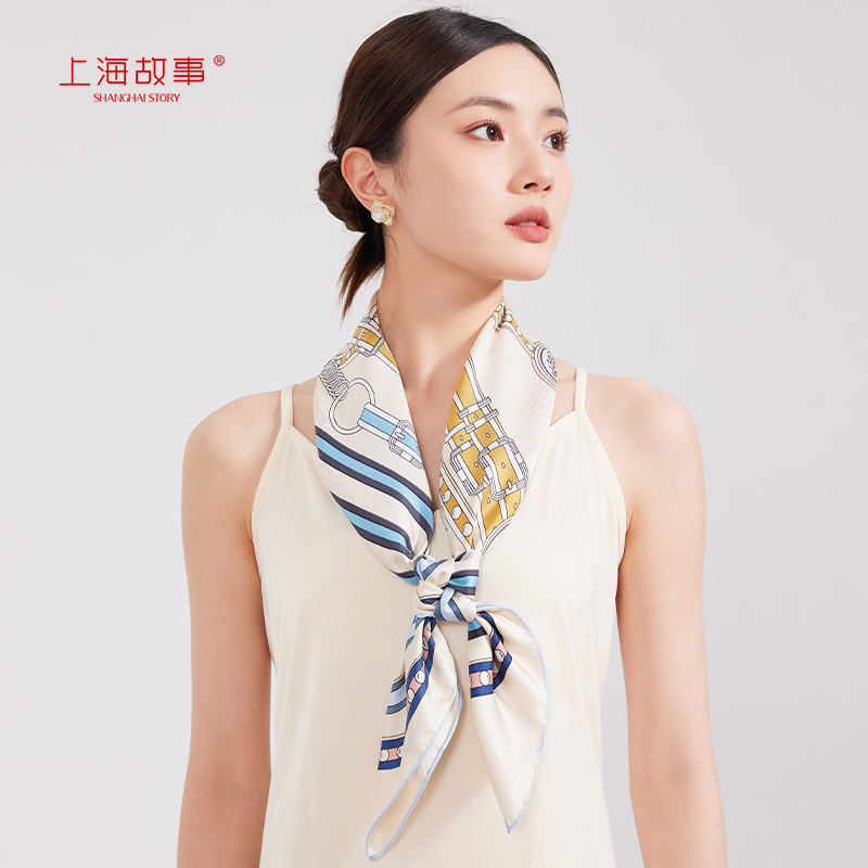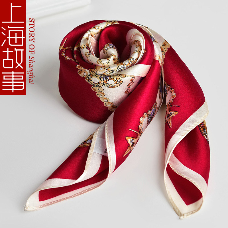 上海故事小方巾真丝发带桑蚕丝丝巾女春季送妈妈围巾礼物披肩防晒
