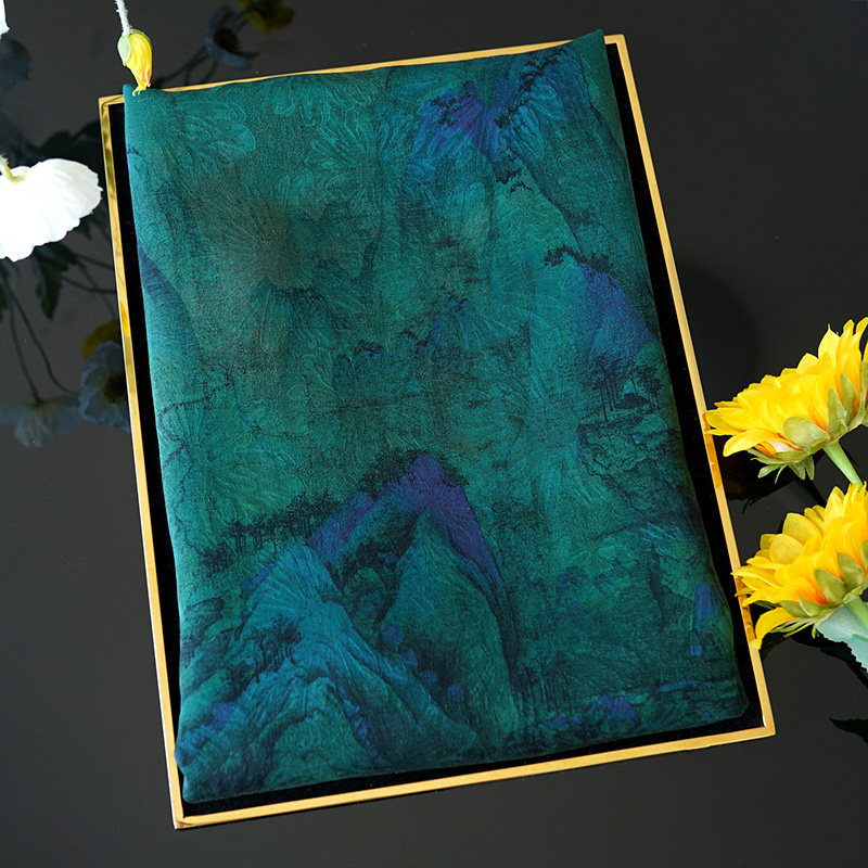 宝石蝶100%桑蚕丝绸围巾披肩双面真丝丝巾女送妈妈闺蜜/清风雅韵