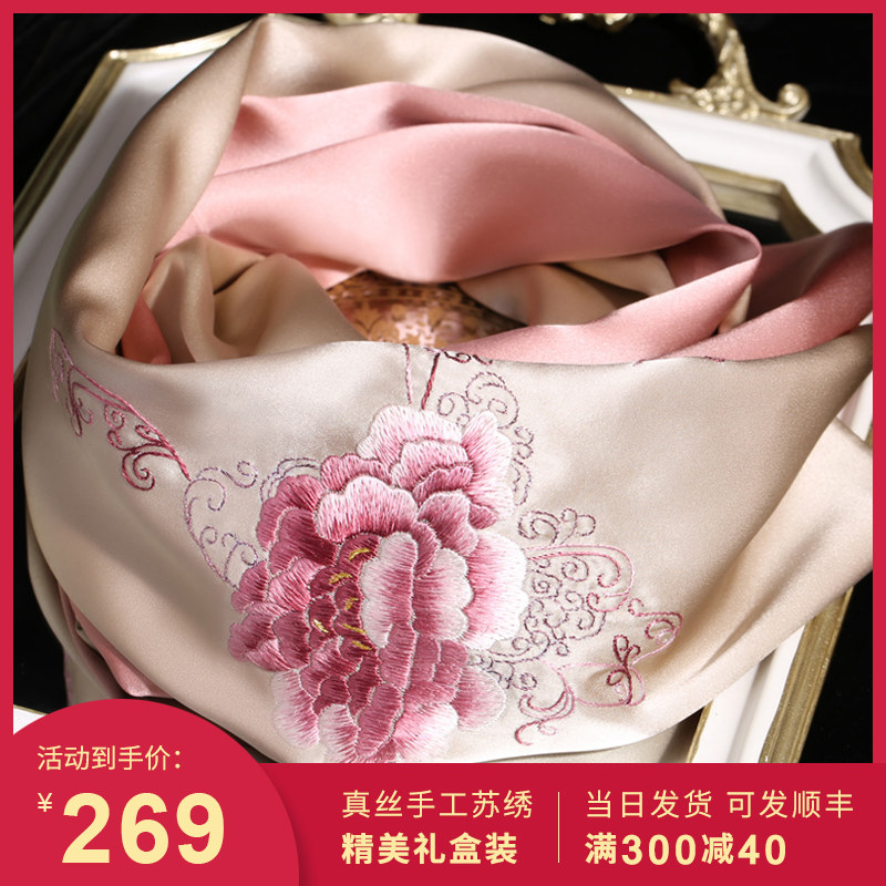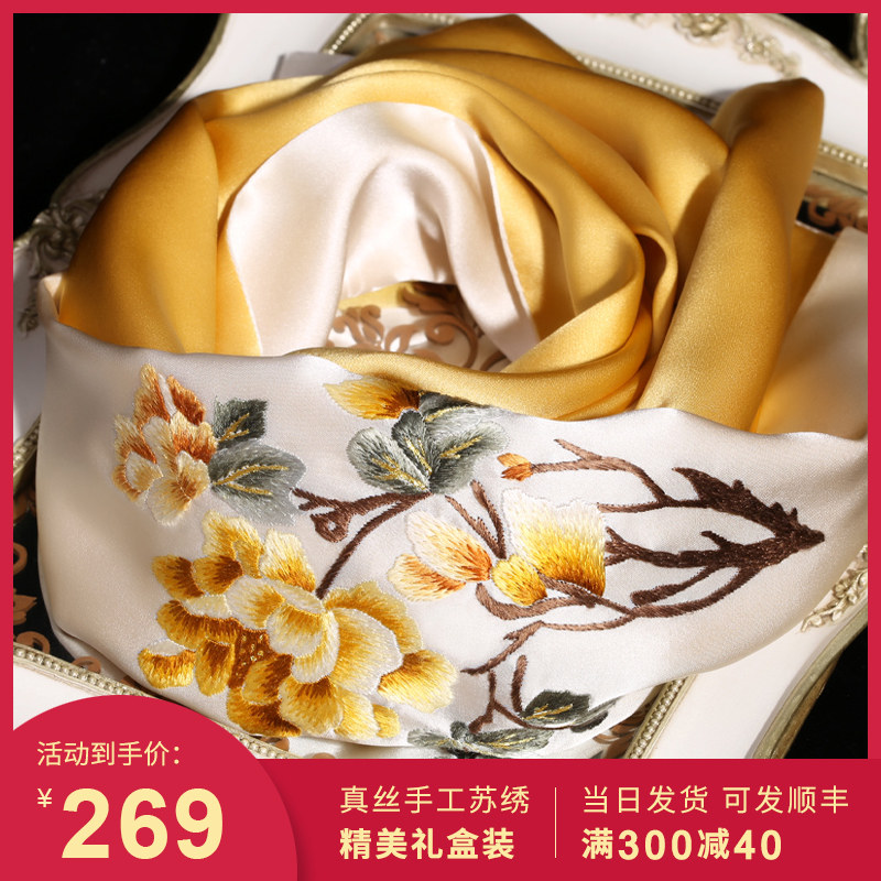 丝巾女百搭春秋真丝围巾苏州丝绸礼盒苏绣桑蚕丝送礼外搭妈妈披肩