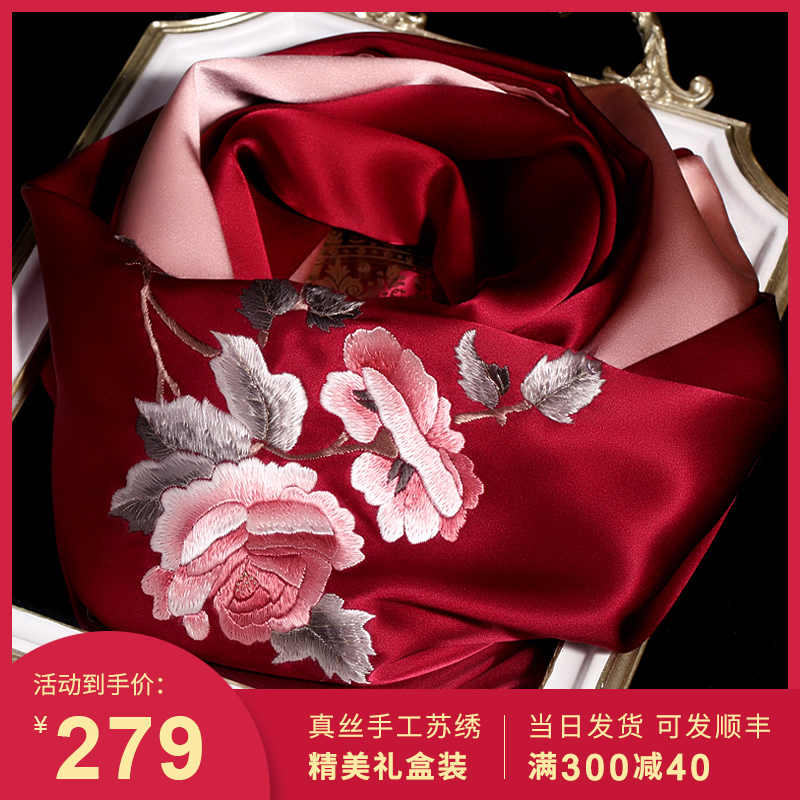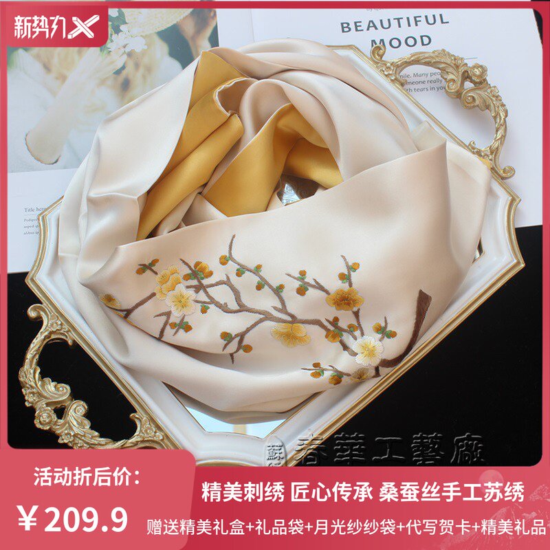 真丝丝巾围巾女送妈妈婆婆生日礼物苏绣苏州桑蚕丝礼盒送长辈