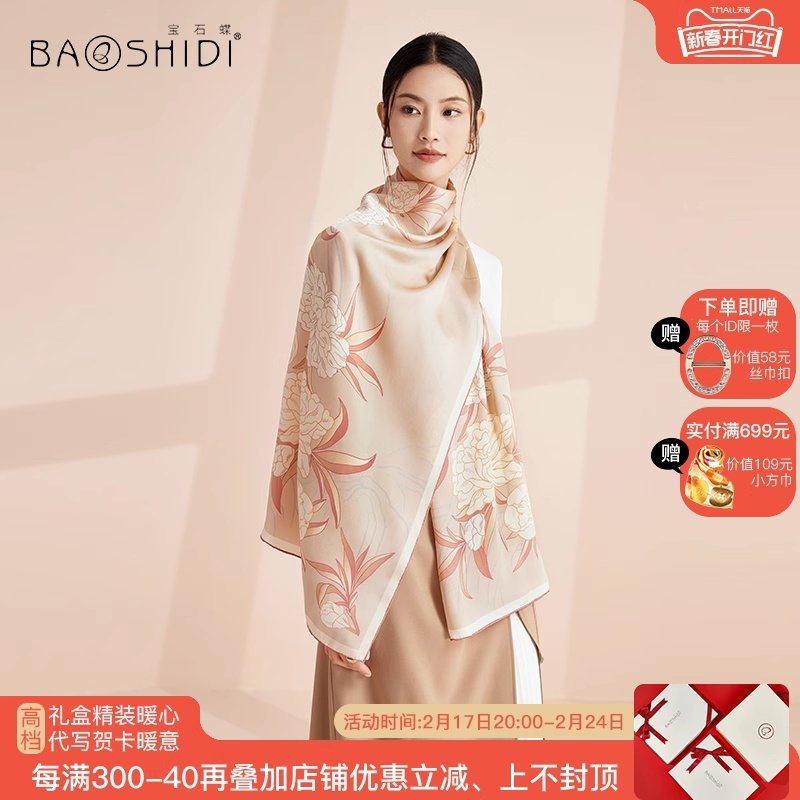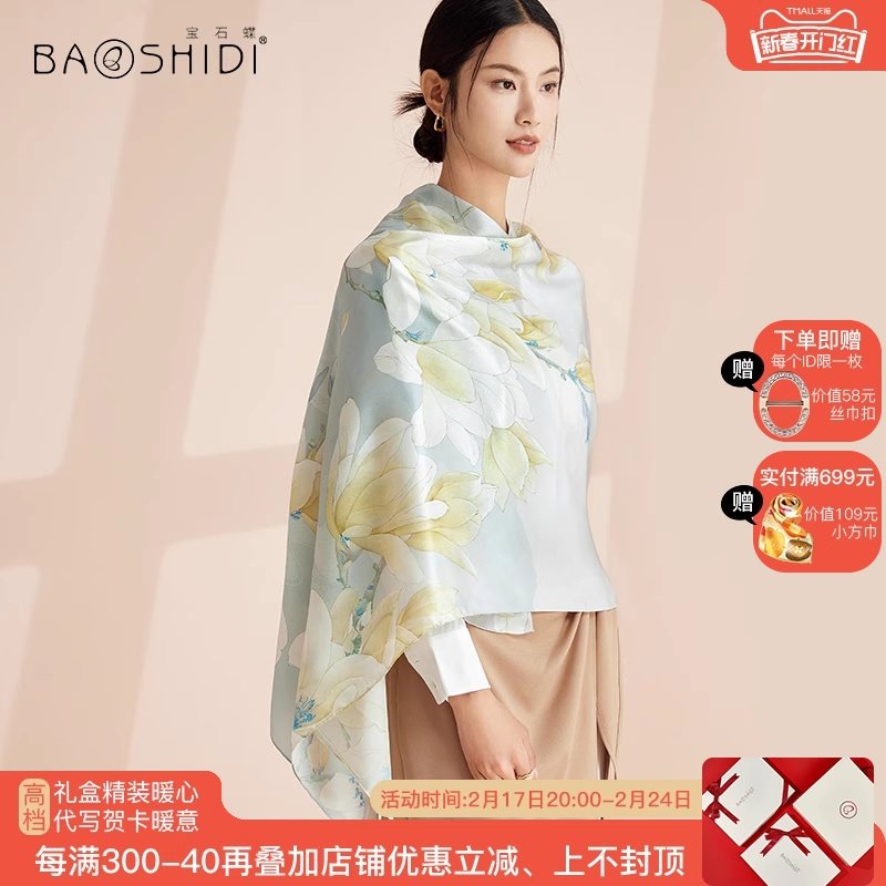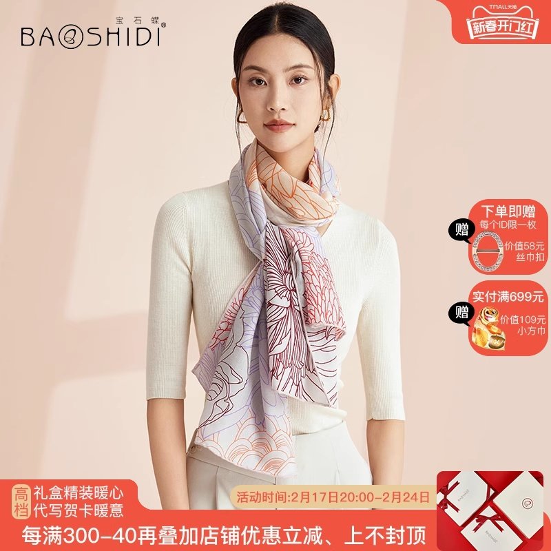 宝石蝶真丝丝巾女新款100%桑蚕丝围巾杭州丝绸礼品送妈妈老师礼物