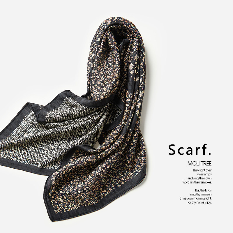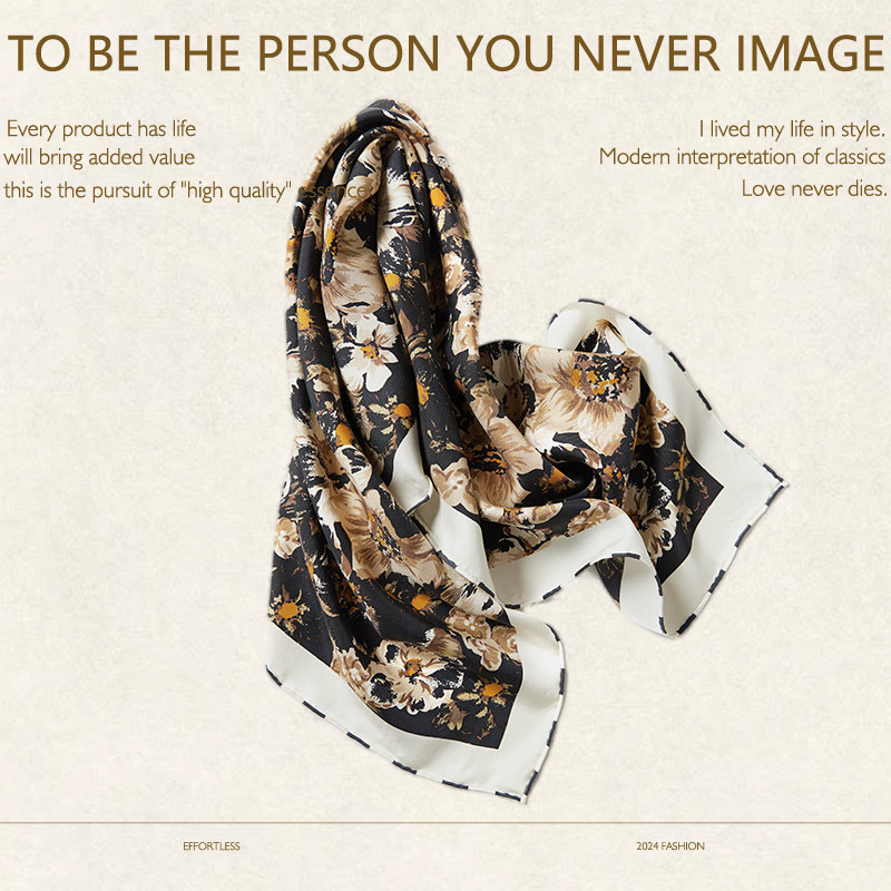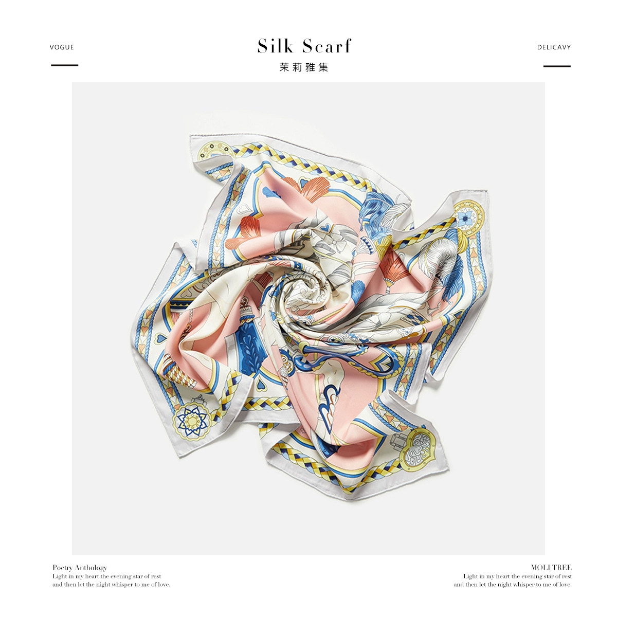 WWJ07045 茉莉雅集 花卉缤纷斜纹绸全真丝丝巾方巾围巾早春新款