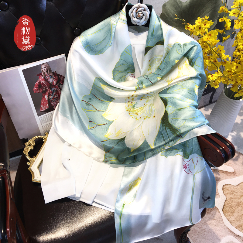 真丝丝巾女春秋苏绣荷花旗袍披肩外搭妈妈礼盒苏州送礼桑蚕丝围巾