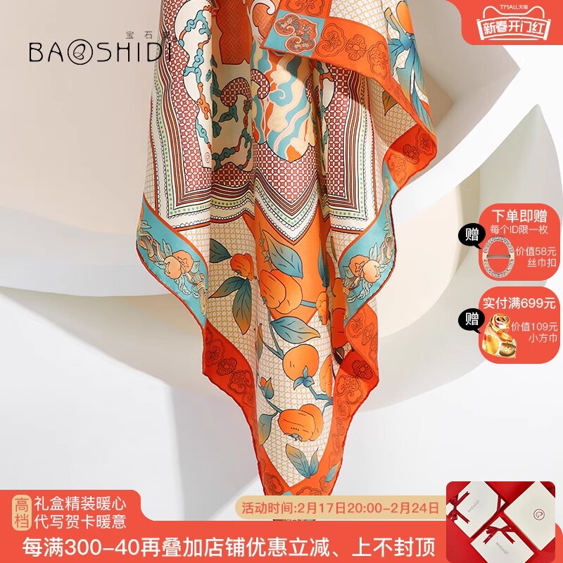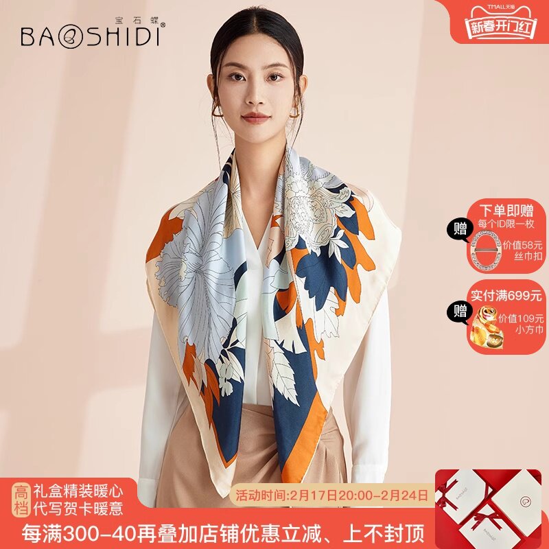 宝石蝶真丝丝巾女100%桑蚕丝围巾礼盒装送妈妈老师女朋友礼物方巾