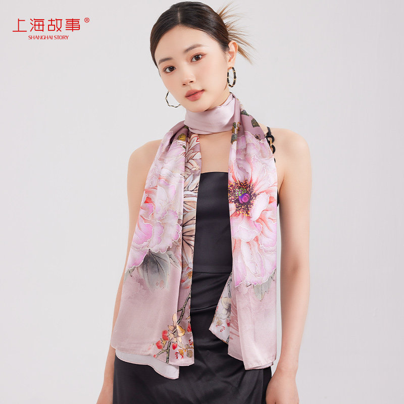 上海故事桑蚕丝丝巾女妈妈时尚围脖真丝围巾披肩丝巾女2023年新款