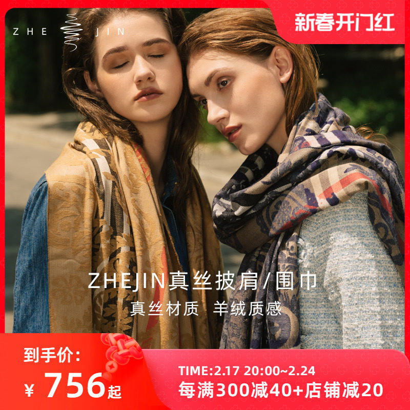 浙锦2023秋冬新款【100%真丝围巾】6A桑蚕丝女士披肩冬季保暖围脖