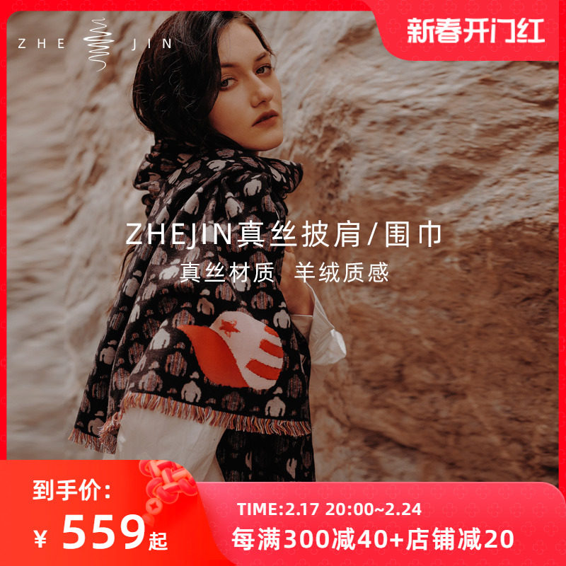 浙锦2024新年礼物【龙年红运100%真丝拉绒围巾】女士蚕丝保暖披肩