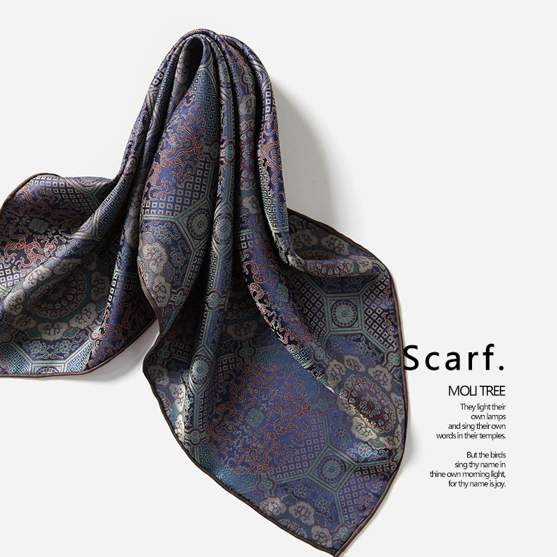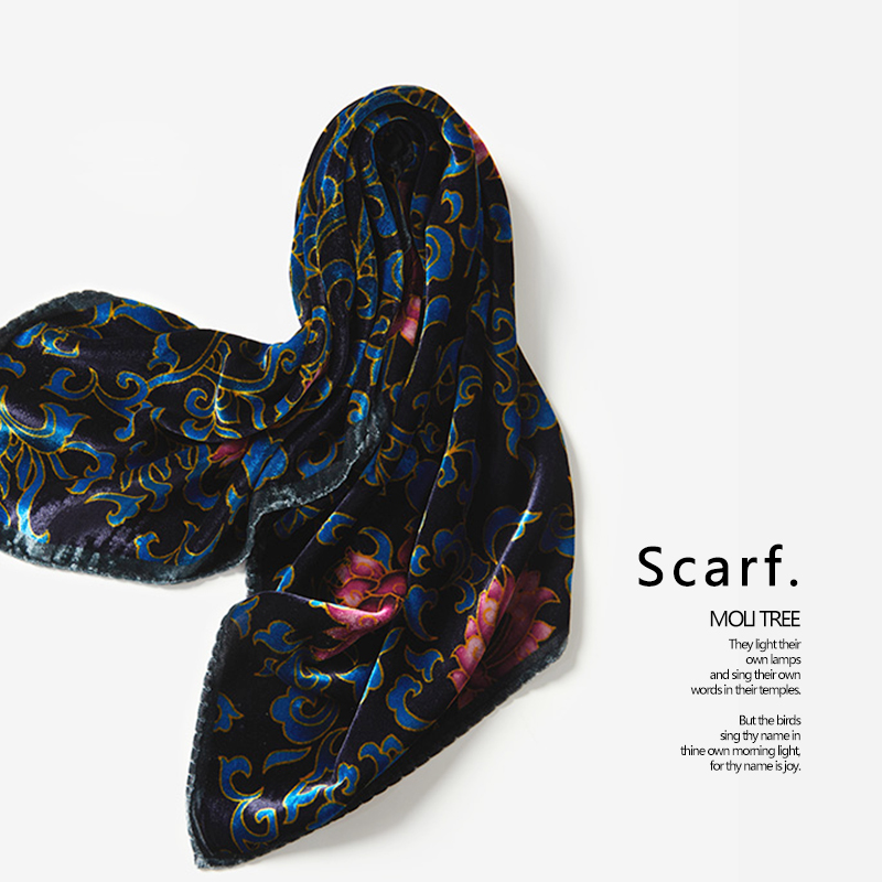 WWJ07060 茉莉雅集 早春新款新中式传统纹路真丝丝绒大方巾围巾女