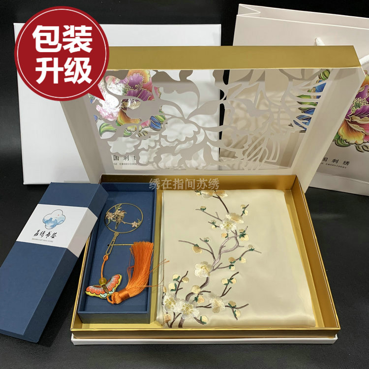 苏绣丝巾礼盒苏州丝绸刺绣真丝妈妈款围巾杭州特产高端送长辈礼品