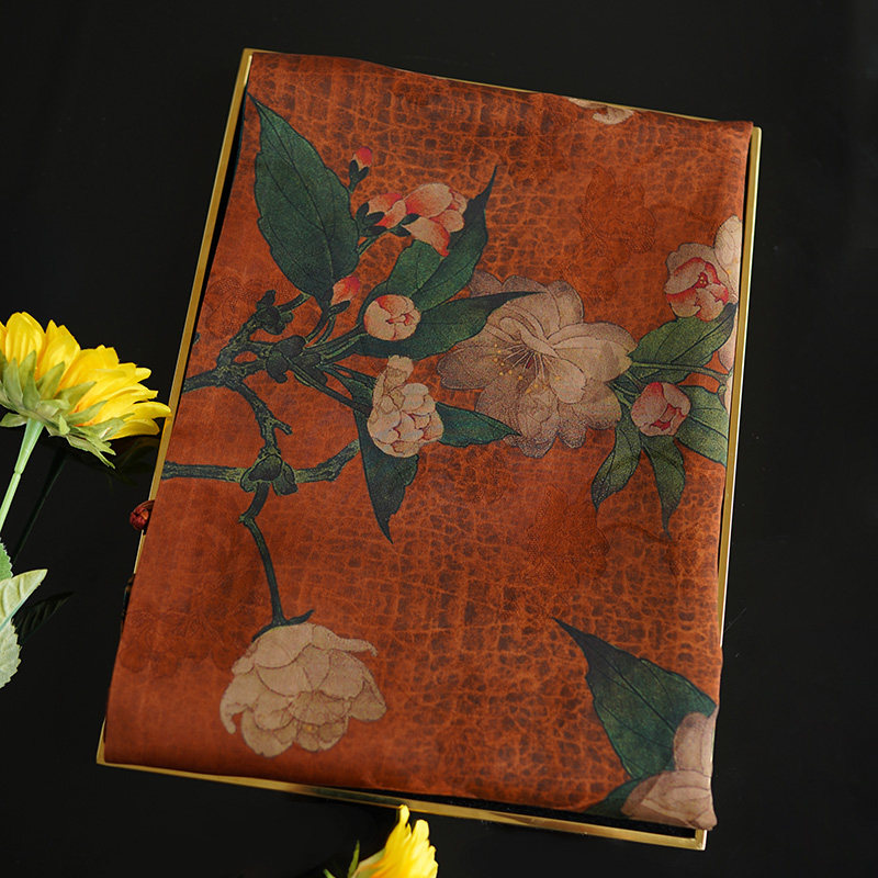 WWJ07046 茉莉雅集 新中式国风35姆米宋锦红云纱全真丝丝巾围巾女