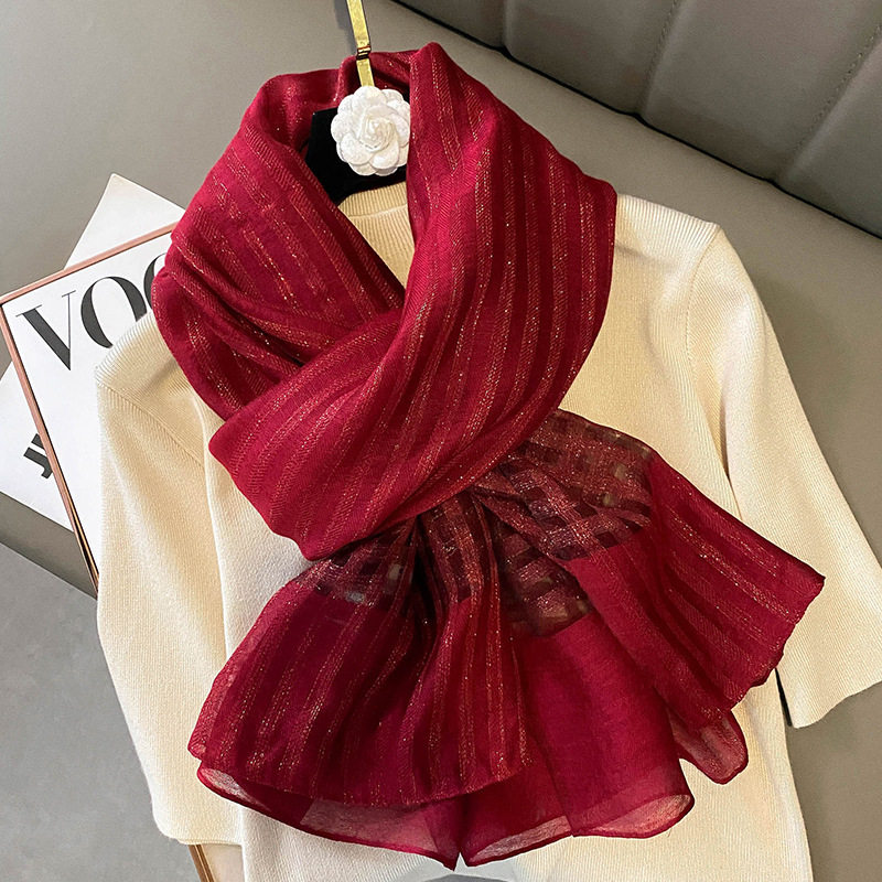 丝巾女2023新款秋冬季高级感纱巾春秋薄款真丝长围巾杭州丝绸高端