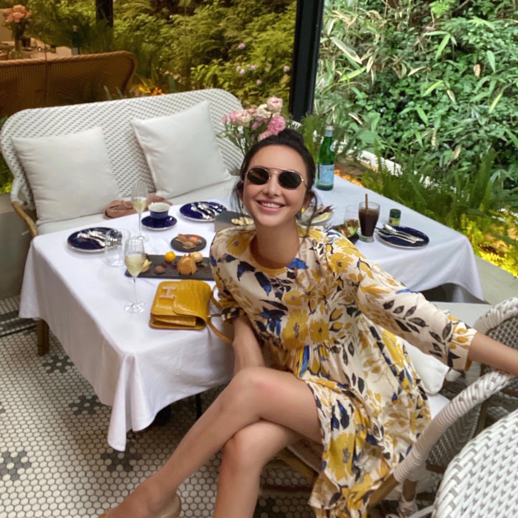 Bettychow 梅丁同款 小爱心淡黄真丝连衣裙气质露背性感吊带长裙